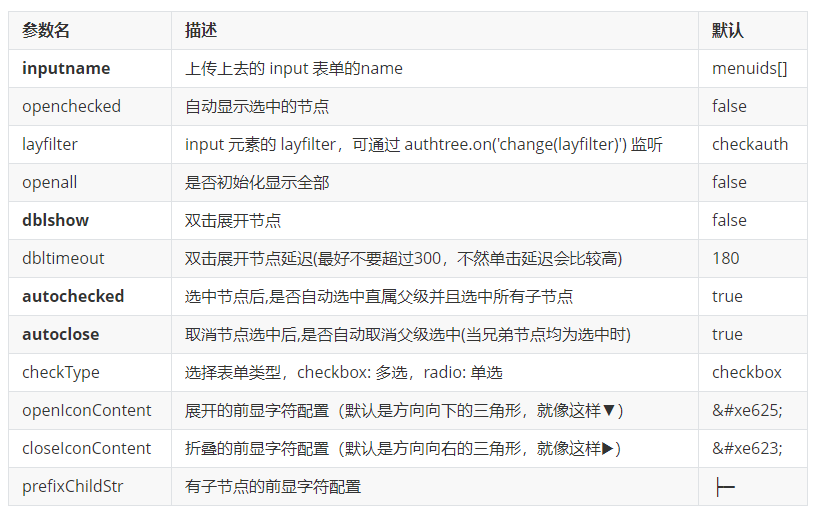 layui 自身提供一个 tree 树形菜单,但是并不适用于权限控制中,比如:当我需要选择用户组的权限(树形结构),需要使用 form 提交用户所选权限数据的时候。