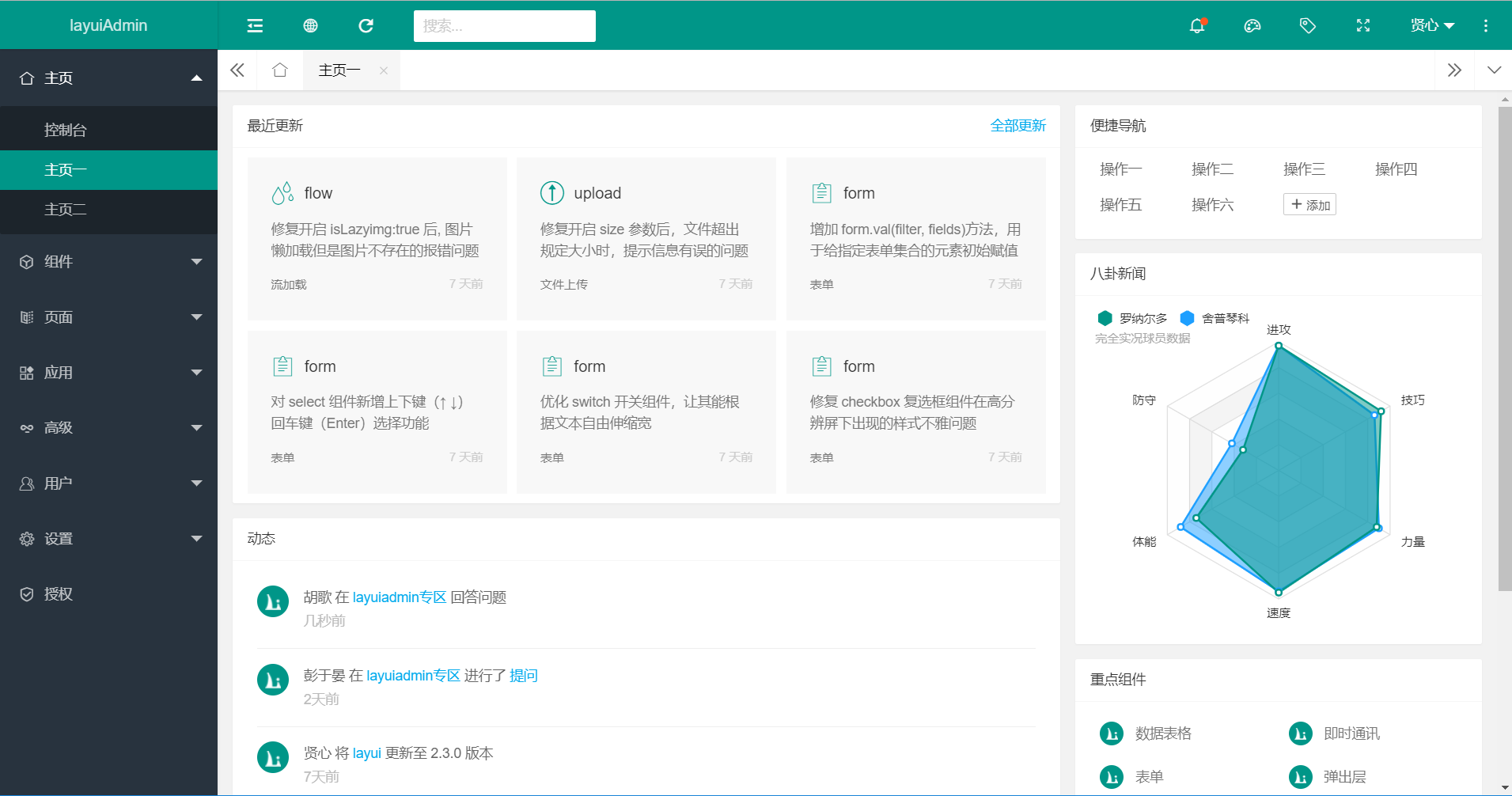 SPA(单页面应用系统)开发模式,也就是所有的页面动作都是在一个宿主页面中完成,通常用于前后端分离。其中视图层全权由前端把控,数据一律走 Ajax 异步请求。layuiAdmin 内部实现了一套基于